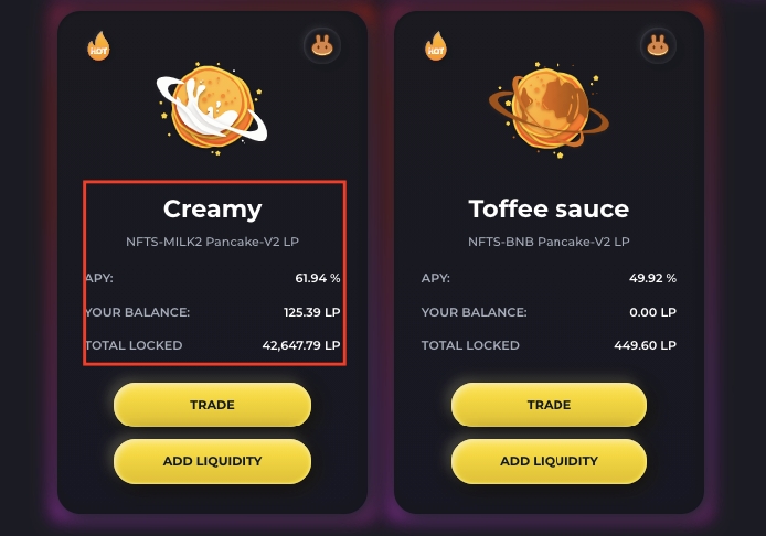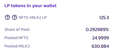 18. To get the LP tokens, you need to stake NFTS with MILK2 or BNB.