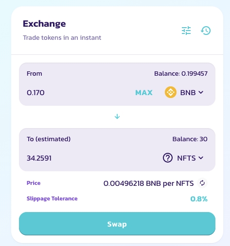13. Click on the ‘Swap’ button.