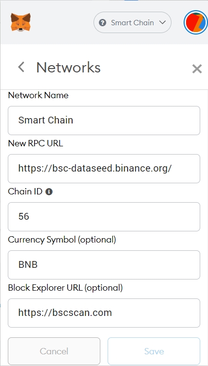 7. To attach your wallet to Binance Smart Chain,